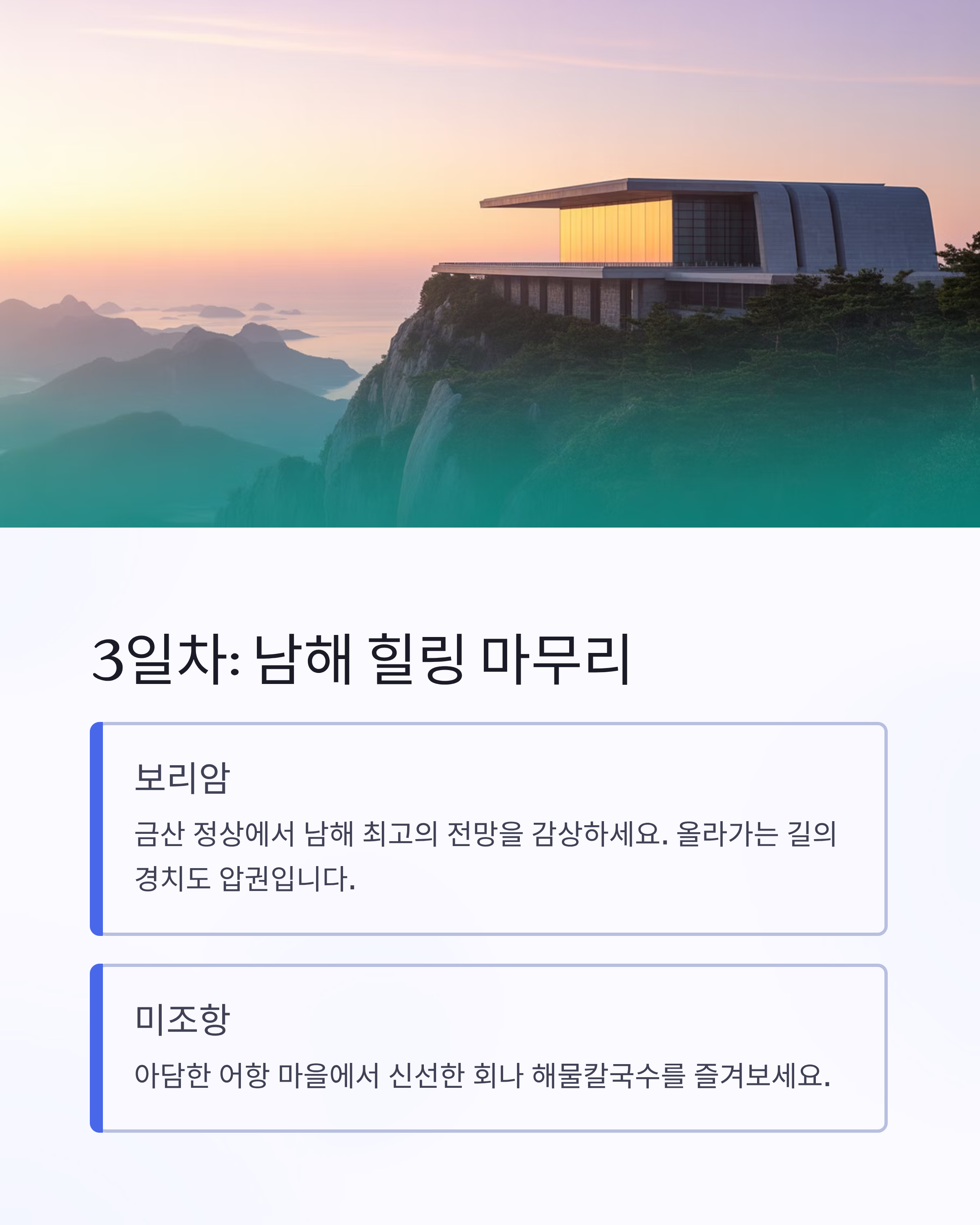 🗓 3일차 — 남해 힐링 마무리 & 귀가
